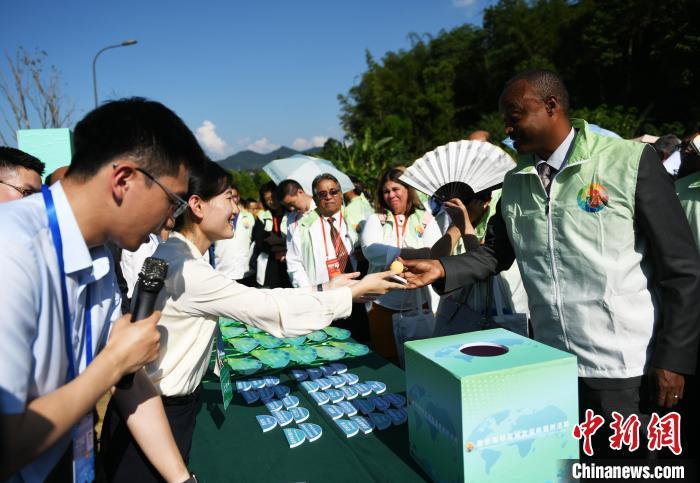 图为各国外宾通过抽签的方式,选定“友谊树”。中新网记者 周毅 摄