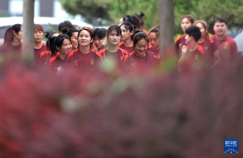5月23日,中国女足队员抵达训练场。新华社记者 贾浩成 摄