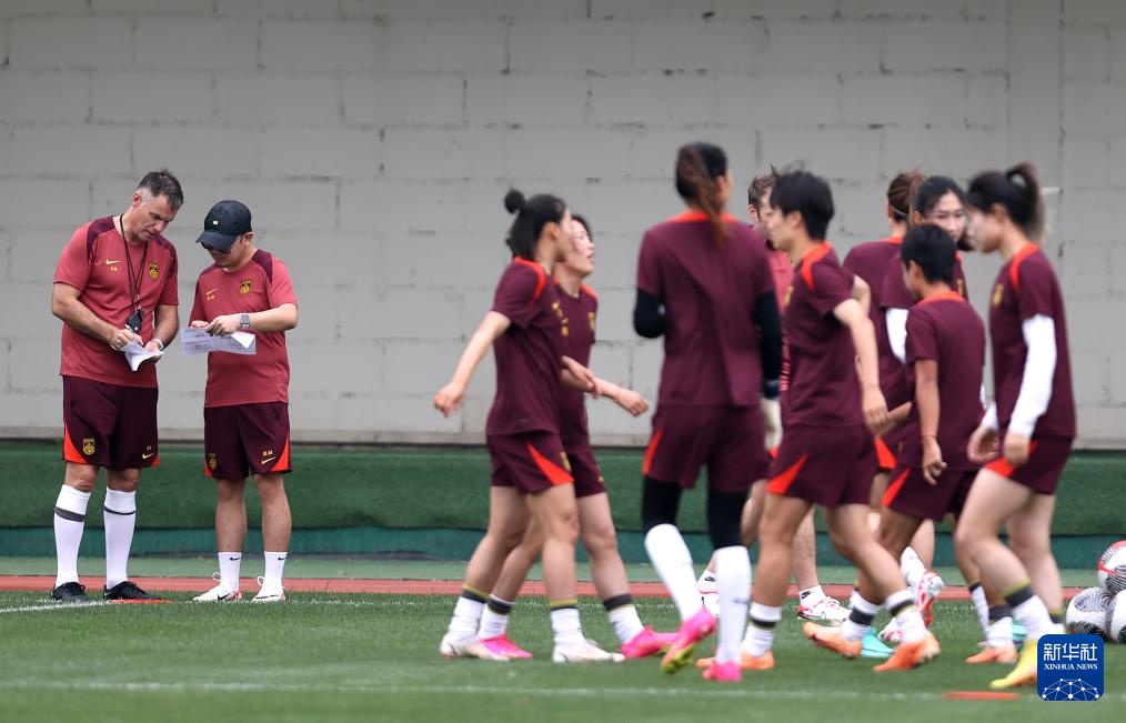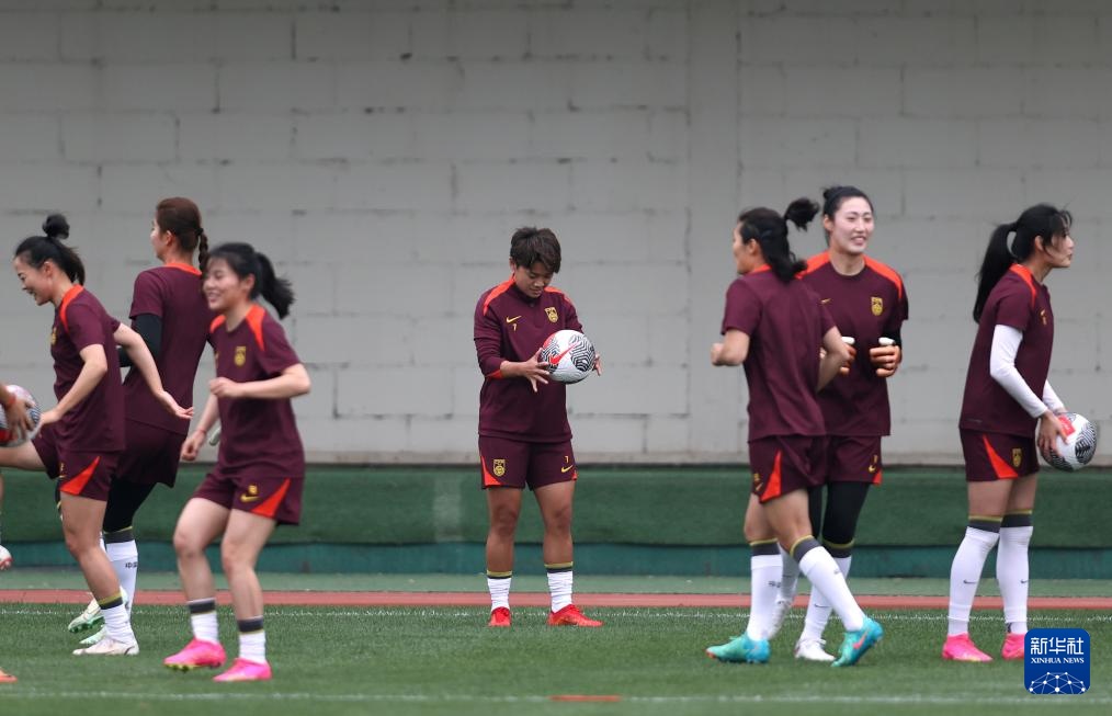 5月23日,中国女足队员在训练前做准备。新华社记者 贾浩成 摄
