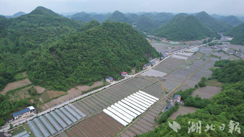5月22日,在鹤峰县中营镇岩屋冲村农友生态农业专业合作社的西红柿种植基地里,工人们正忙着移栽西红柿苗,打孔、栽苗、扶苗、覆土、压实各个环节衔接有序,一派繁忙景象。
