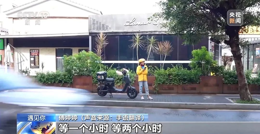 提起这次失败的送餐经历,傅婷婷现在依然有些激动。刚注册成为外卖骑手时,她不会熟练使用导航,平台也还没有上线面向听障骑手的关怀软件。面对复杂的路况,傅婷婷常会陷入无声的困境中。