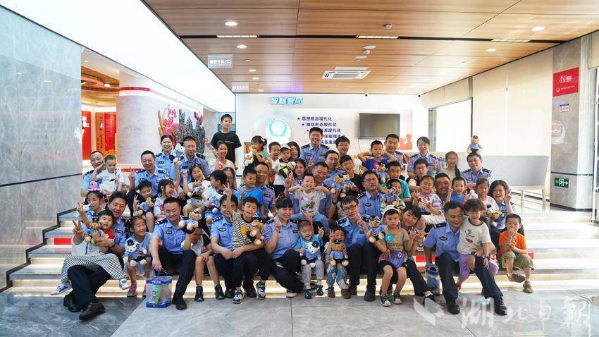5月25日,武汉市公安局武昌区分局团委邀请四十多名可爱的“小警宝”们走进水果湖派出所警营,“零距离”体验警察爸爸、警察妈妈的工作环境,以别样的方式迎接即将到来的“六一”儿童节。警宝们观看了帅气的汉警快骑表演、缉毒警犬展示,近距离参观了狙击步枪等警务装备。大家还走进派出所指挥室和警营文化墙,深入了解了“110”是如何运转的,并聆听了英模的英勇事迹,沉浸式体验了警察爸妈的工作内容,进一步加深了警宝们对警察职业的理解和尊重。“我长大了也想当警察,可以吗?”在离开警营时,许多警宝与父母交流,自豪而期待地表达了他们作为“新一代”的警察梦。参加活动的民辅警们纷纷表示,能在警营和孩子一起过节,很幸福,很有意义。