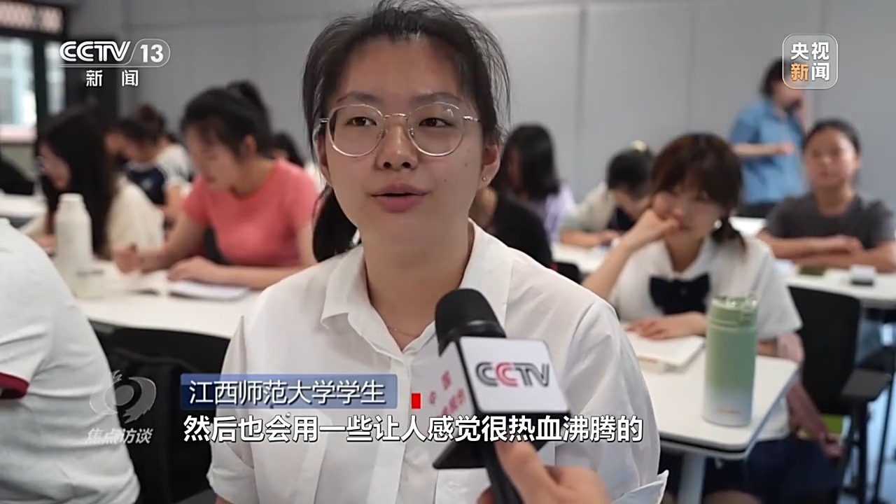 在江西师范大学,思政课老师王钰鑫用电视剧《觉醒年代》里的情节来吸引学生,开始他的《新时代中国青年如何弘扬伟大建党精神》主题课。这堂思政课,鲜活的故事一个接一个,理论自然融入其中。40分钟下来,同学们不仅兴趣满满,收获也不小。