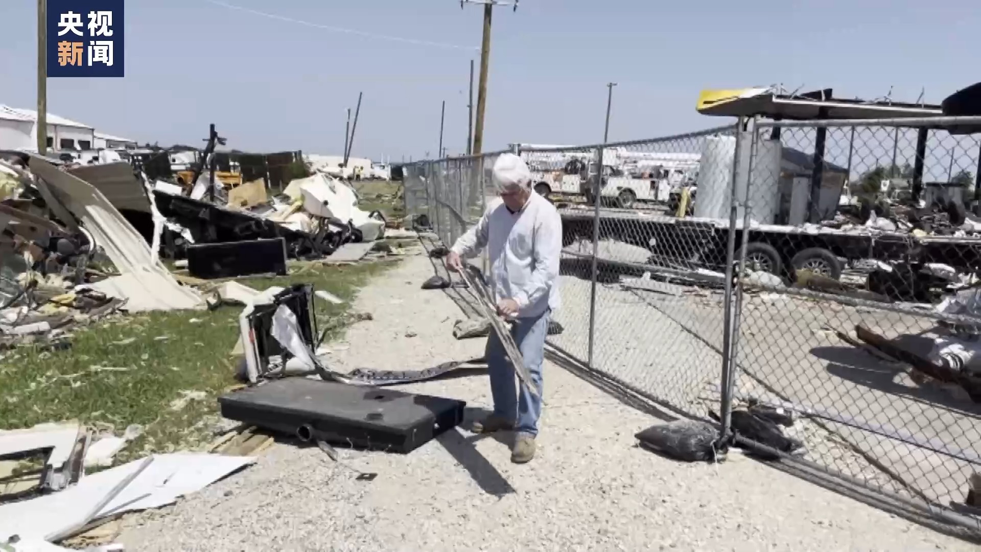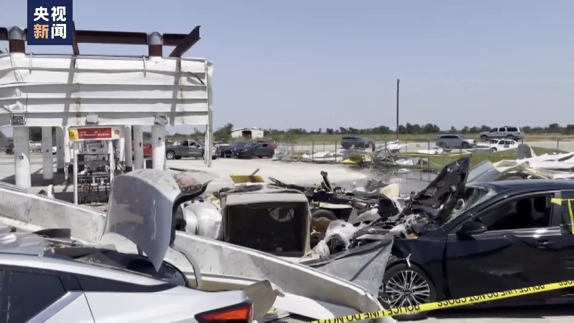 央视记者 刘旭:这里是美国得克萨斯州北部地区,刚刚过去的周末,这里经历了一场破坏性极强的龙卷风,可以看到龙卷风过境后,房屋被掀翻,汽车、电线杆、建筑物杂乱地堆积在一起,像垃圾站一样。我旁边是一个高速路休息区以及加油站,这里建筑结构相对坚固,所以在当地气象部门发布龙卷风灾害预警之后,很多人都到这里来避险。但由于这是过去十年来得州所经历的最严重、破坏力最强的龙卷风灾害,整个加油站也是破坏严重。我们向受灾民众了解到,龙卷风过境时,大家都来不及反应,就发现家园完全被毁,家具汽车等等都不知道被吹到哪里了。