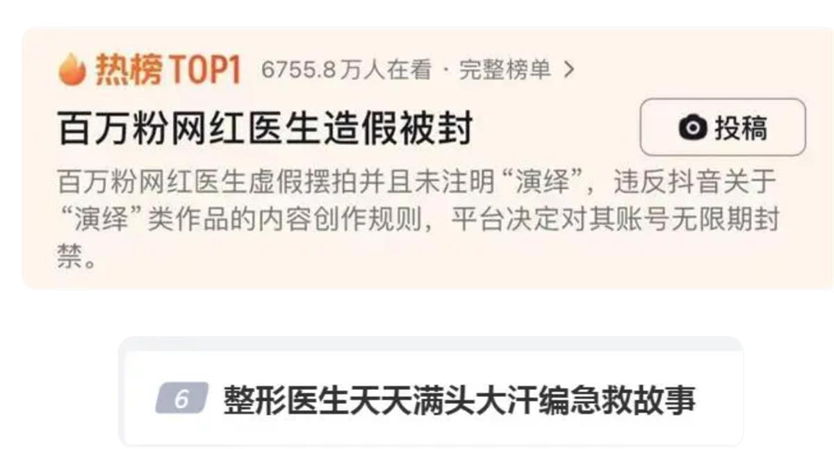 近日,抖音公布了两起违规案例。其中之一是粉丝近150万的网红医生“老陶有话说”,因自编自导虚假摆拍了一个急救视频,被抖音永久封禁。(据5月28日广州日报报道)