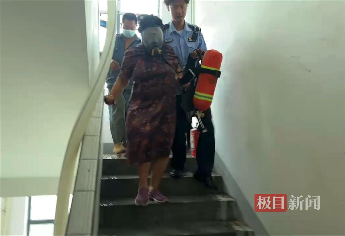 这时一位六楼住户焦急地说道:“还有一名老人在六楼家中没下来,打电话也没有人接,警察同志,请你们快上去看看!”民警了解情况后,一边继续灭火,一边立即前往六楼寻找老人,最后在六楼成功找到被困老奶奶,由于现场烟雾弥漫,无法呼吸,民警将仅有的空气呼吸器给老奶奶戴上,搀扶着老人穿过浓烟,最终成功将老人救出。