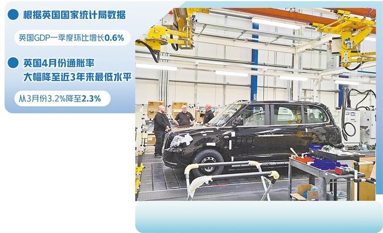 服务业、制造业复苏势头足。英国国家统计局数据显示,一季度服务业产出在连续3个季度收缩后首次获得正增长,且14个服务业子行业中有11个实现增长,其中增长幅度最大的是运输和仓储业。面向消费者的服务业产出继去年四季度下降0.4%后,一季度实现环比增长0.6%,表明随着通胀从高位下降,实际工资上涨,消费者可支配收入上升,消费需求疲软得到进一步改善。继去年四季度制造业产出环比下降1.0%后,英国今年一季度制造业产出增长1.4%,复苏明显,制造业企业盈利前景和市场预期有效改善。制造业回暖的主要贡献仍来自于汽车制造,汽车产业环比增长5.7%,已连续6个季度实现正增长,显示出英国国内及海外出口市场对新能源汽车的旺盛需求。