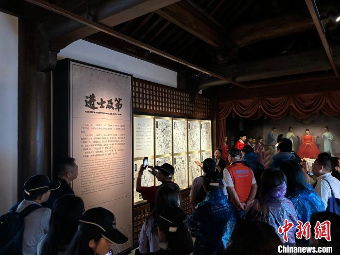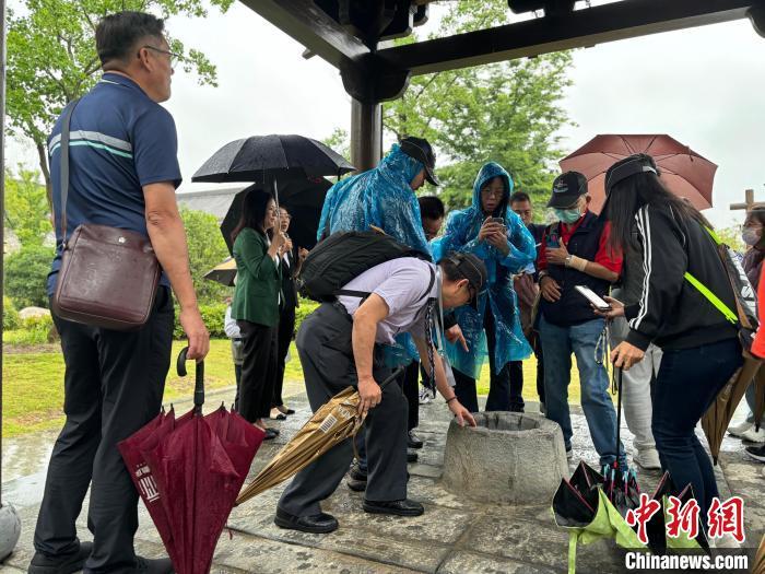 5月27日,台湾包公文化研究发展总会参访团安徽合肥包公故里文化园参访。图为参访团在包公故里花园井处“打卡”。中新社记者 赵强 摄