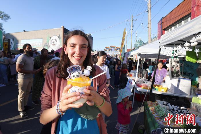 当地时间5月31日,为期3天的2024年渥太华唐人街大夜市在加拿大首都渥太华揭幕,带有熊猫装饰的水果饮料吸引当地民众消费品尝。中新社记者 余瑞冬 摄