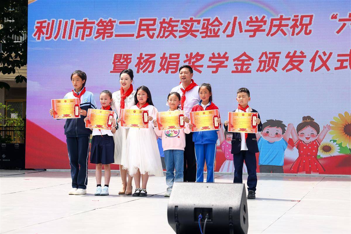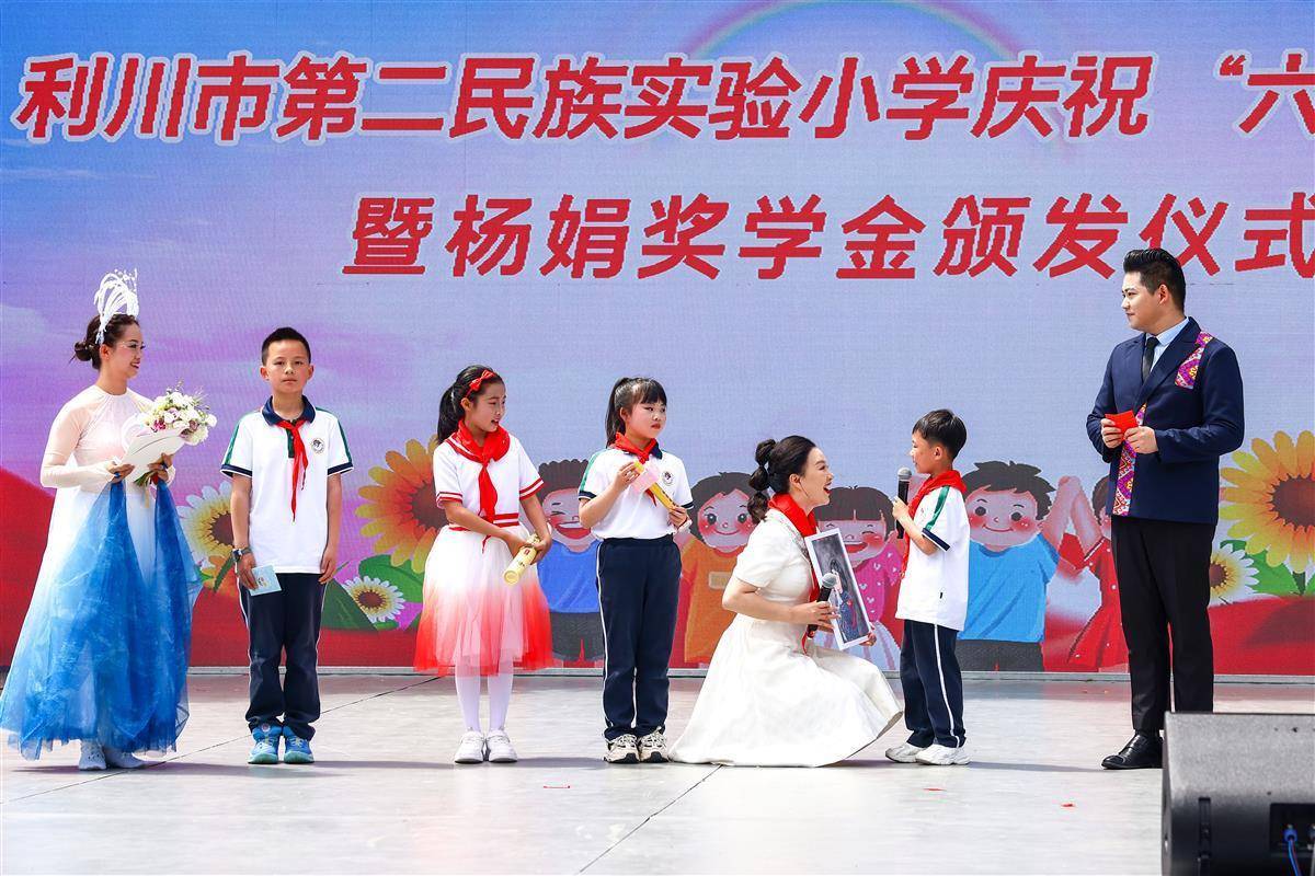 当天上午,利川市第二民族实验小学举行六一文艺汇演活动,舞蹈、歌曲、肉连响表演等节目一一上演,现场气氛热闹非凡,童趣盎然。活动举行“杨娟奖学金”颁发仪式,现场为学生代表发放奖状和500元至1000元不等的奖学金,激励学子努力拼搏,感恩回报,用知识改变命运。