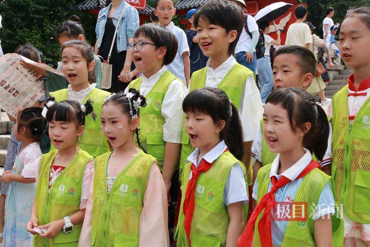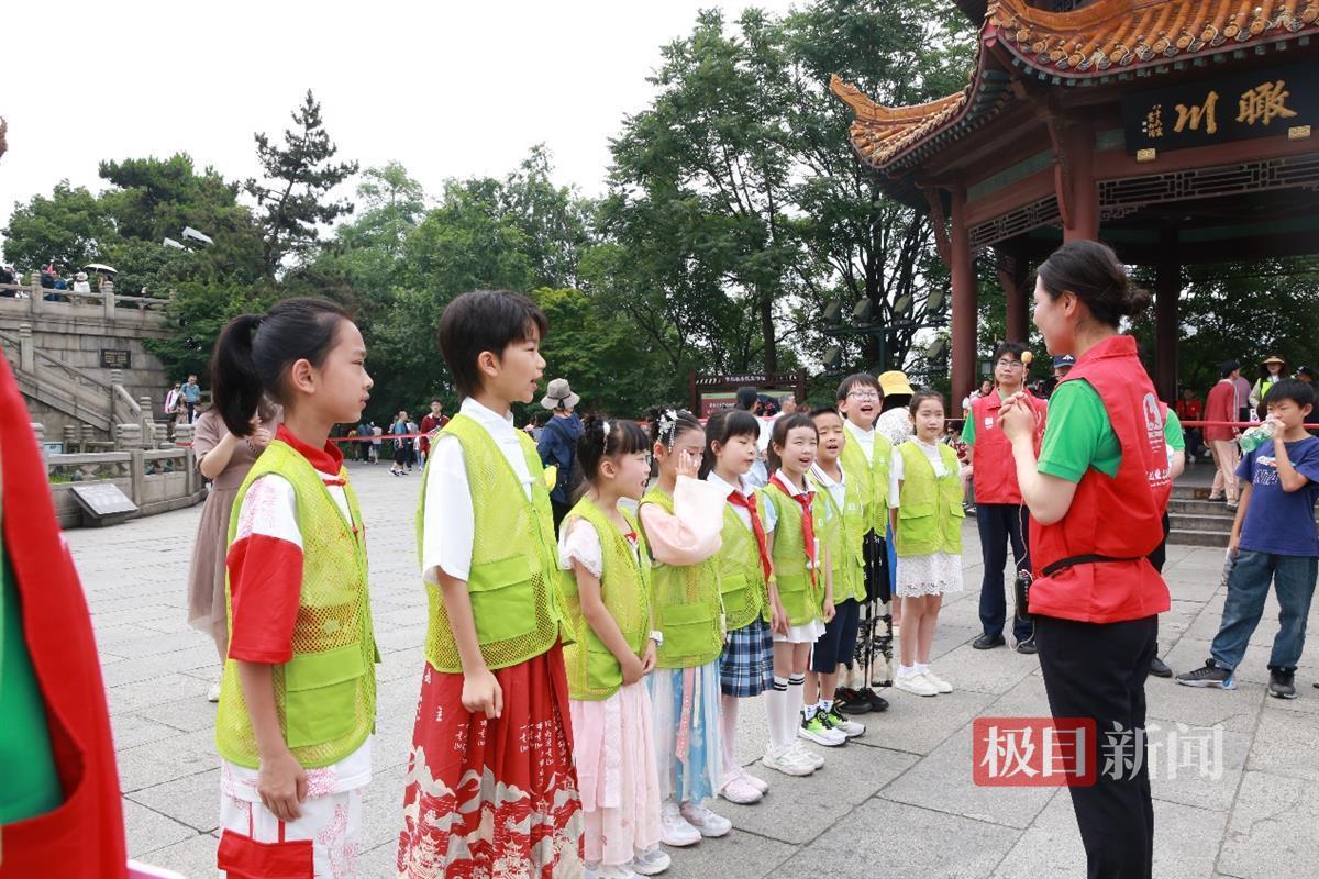 儿童节当天,黄鹤楼景区特别推出背诗免门票优惠福利,14周岁及以下的儿童均可参与。为了传承传统文化,感受诗词之美,让孩子们体验一个诗意盎然的儿童节,武汉文旅志愿者邀约十余名小朋友背诗游园。在古诗吟咏中,文旅志愿者陪着这群孩子追寻黄鹤楼的前世今生,感受黄鹤楼璀璨的诗词文化。