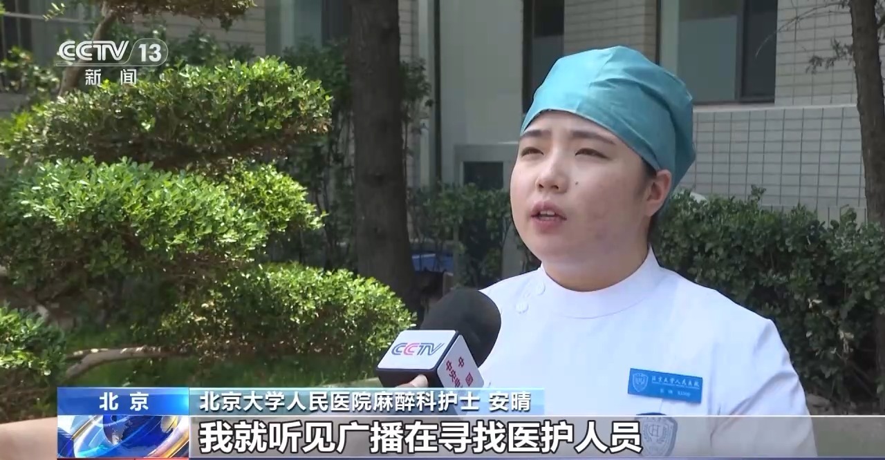 北京大学人民医院妇产科生殖中心护士 王乐:安晴当时做了大概两组之后,我看出来她比较累了,我就赶紧上手了。我在按压的过程中,别人把她的头偏向了一侧,清除了一下口腔分泌物。