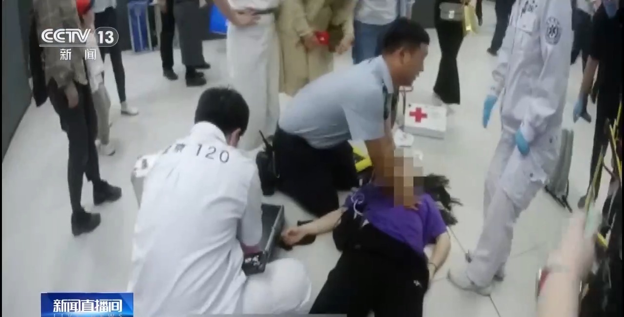 北京大学人民医院麻醉科护士 安晴:进了地铁闸机门之后,我听见广播在寻找医护人员,我赶紧从楼梯走了下去,当时患者已经没有反应了,已经呼之不应了,我就立马上前去查看了一下她的瞳孔。当时瞳孔已经散大了,然后摸了一下颈动脉的搏动,也是消失的。我就判定她为心脏骤停了,紧急为她进行了胸外按压。