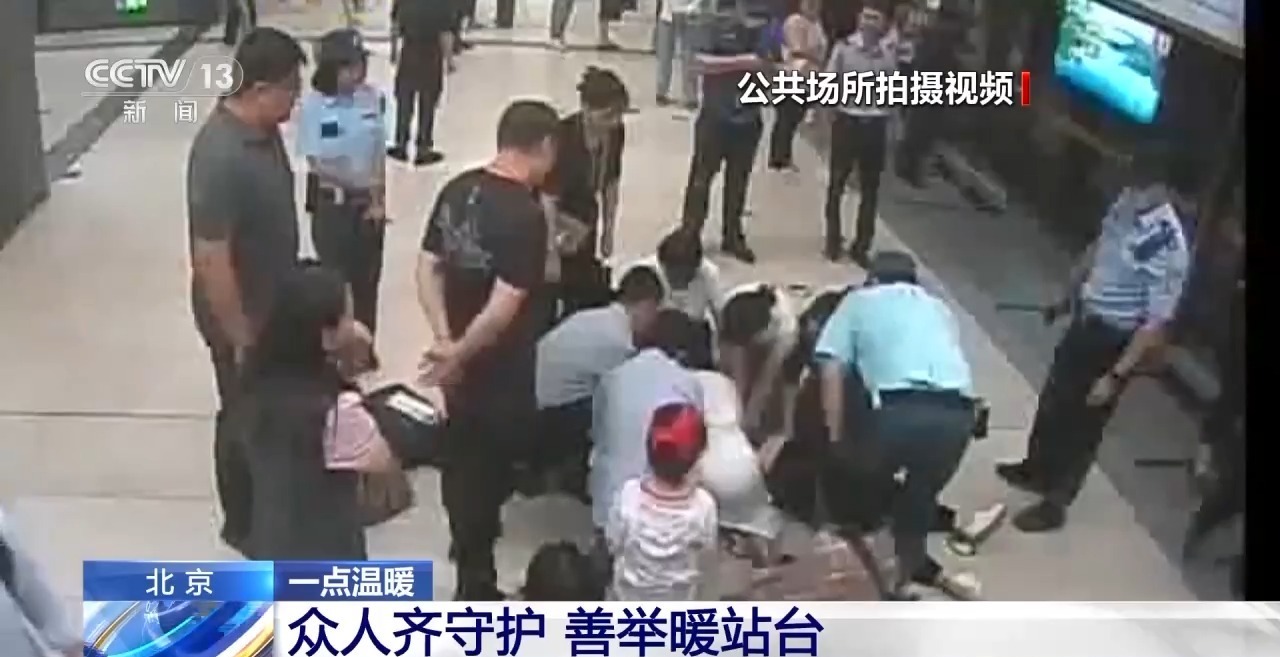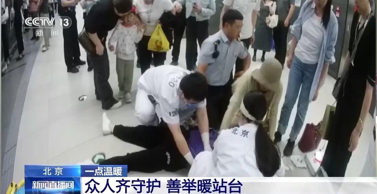 这场与时间赛跑的救援,发生在北京地铁6号线车公庄站的站台上。当时,一位带着孩子的母亲在等车时突然晕倒,旁边的乘客和车站工作人员一起接力进行抢救。