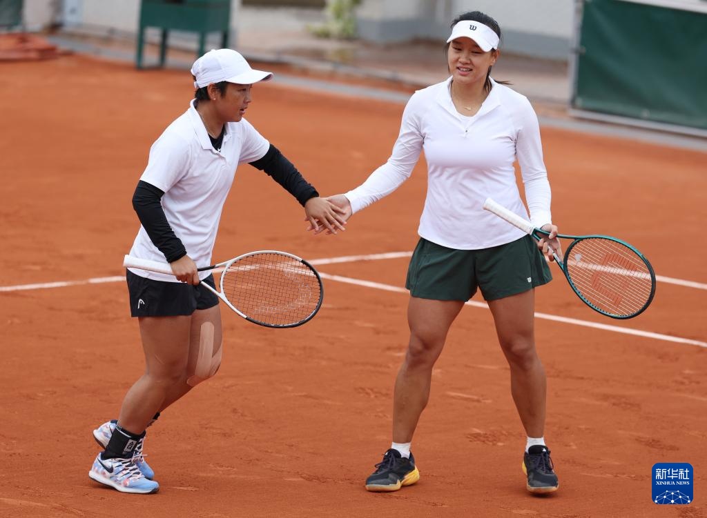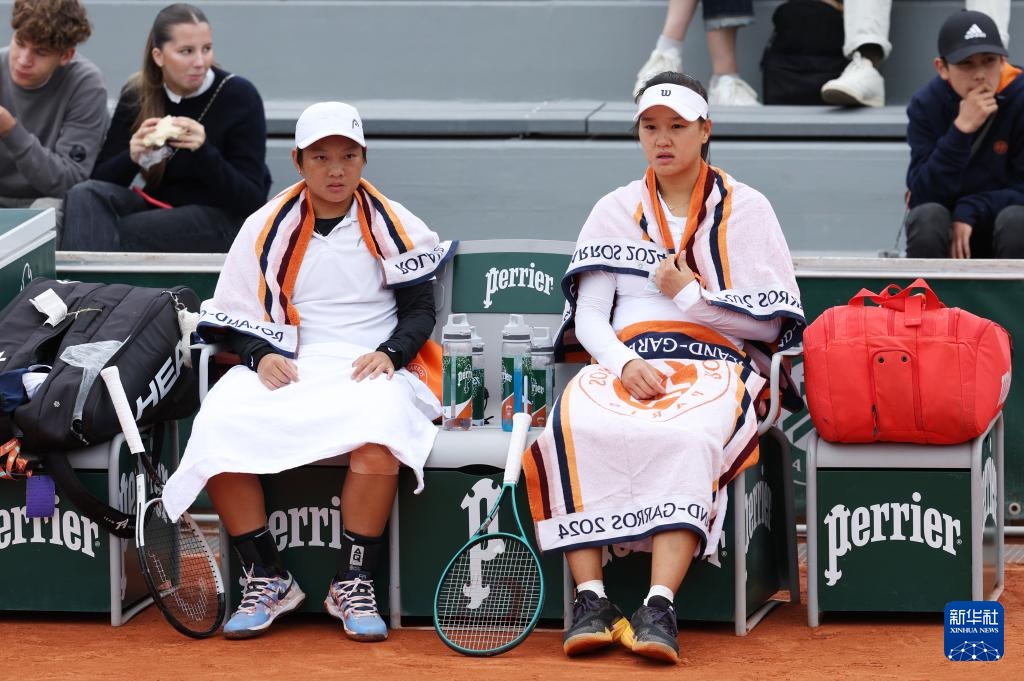 6月2日,郭涵煜(右)/蒋欣玗在比赛间隙休息。新华社记者 高静 摄