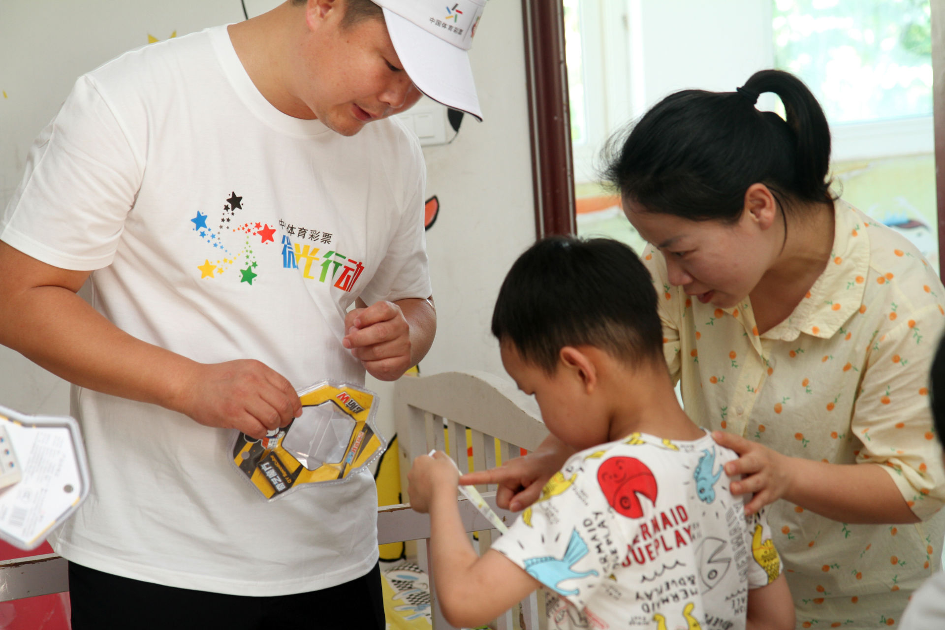 接下来进入“自由搭配”时间,爱心人士们有的与孩子们聊天拉家常,有的辅导孩子们做作业,有的跟着孩子们学手语,更多人则把孩子们带到操场上,告诉孩子们学轮滑、骑自行车。累了,用毛巾替孩子们擦把汗;渴了,立即给孩子们一瓶矿泉水。爱心人士们就像对待自己的孩子一样,十分投入、十分细致、十分耐心,部分“体彩爱心妈妈”还带来了自己的孩子,让孩子陪着特校的孩子们玩耍、与他们近距离互动,既感受微公益的力量,更是接受一场特殊的心灵洗礼与教育。