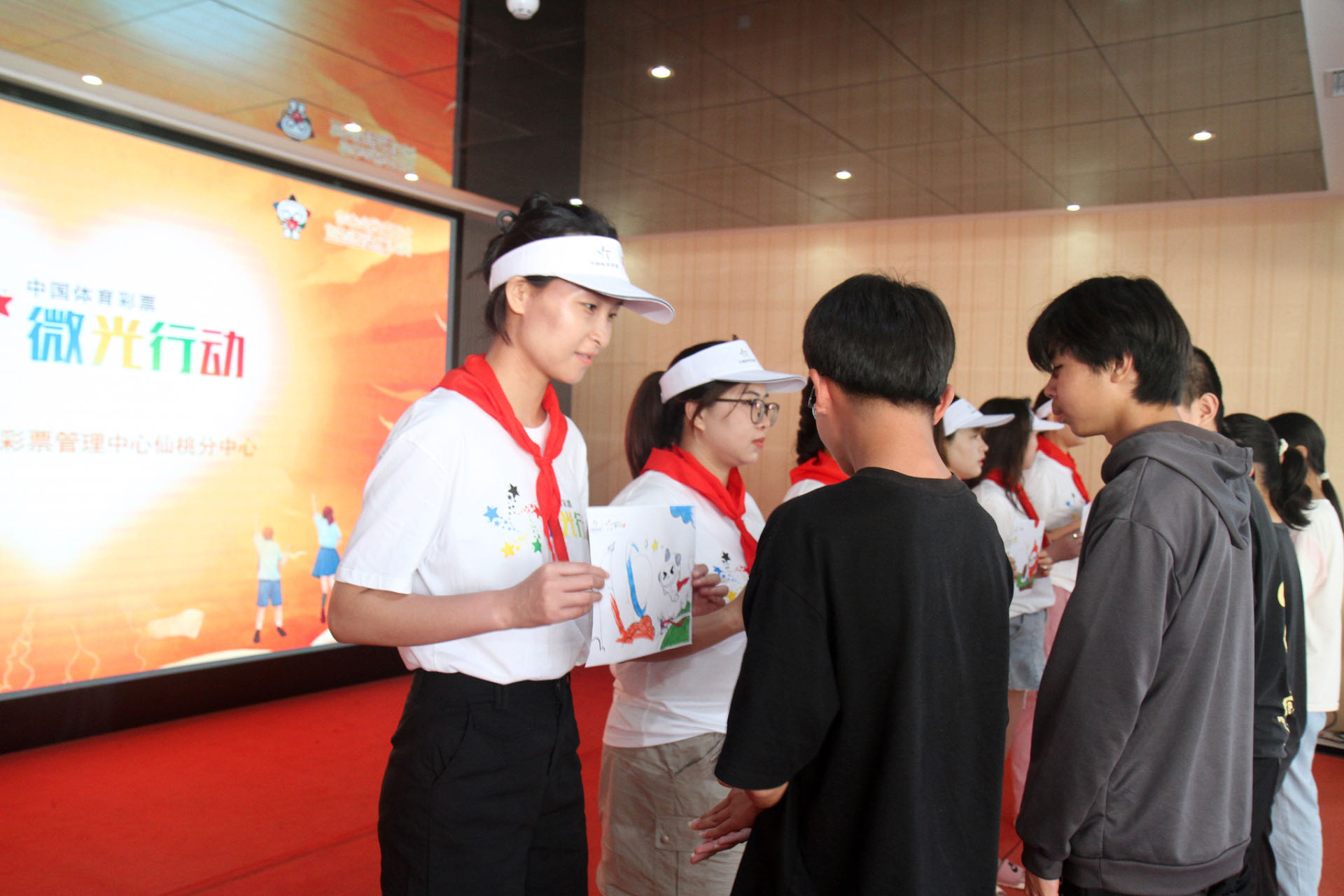 由于先天原因,就读于仙桃市特殊教育学校的孩子们,大多存在这样或那样的身体缺陷,但这些并不影响他们渴望学习交流、追求快乐成长的热切愿望。在学校老师的指导下,孩子们还专门准备了节目,与“体彩爱心妈妈”们进行互动。仙桃46021体彩销售点代销者周女士代表爱心人士,为孩子们提前送上了六一儿童节的美好祝福,她的即兴发言朴实自然、充满真情,获得了孩子们的热烈掌声。孩子们纷纷为“体彩爱心妈妈”们系上红领巾,并送上他们现场涂鸦创作的“乐小星”图画表达深深的谢意。