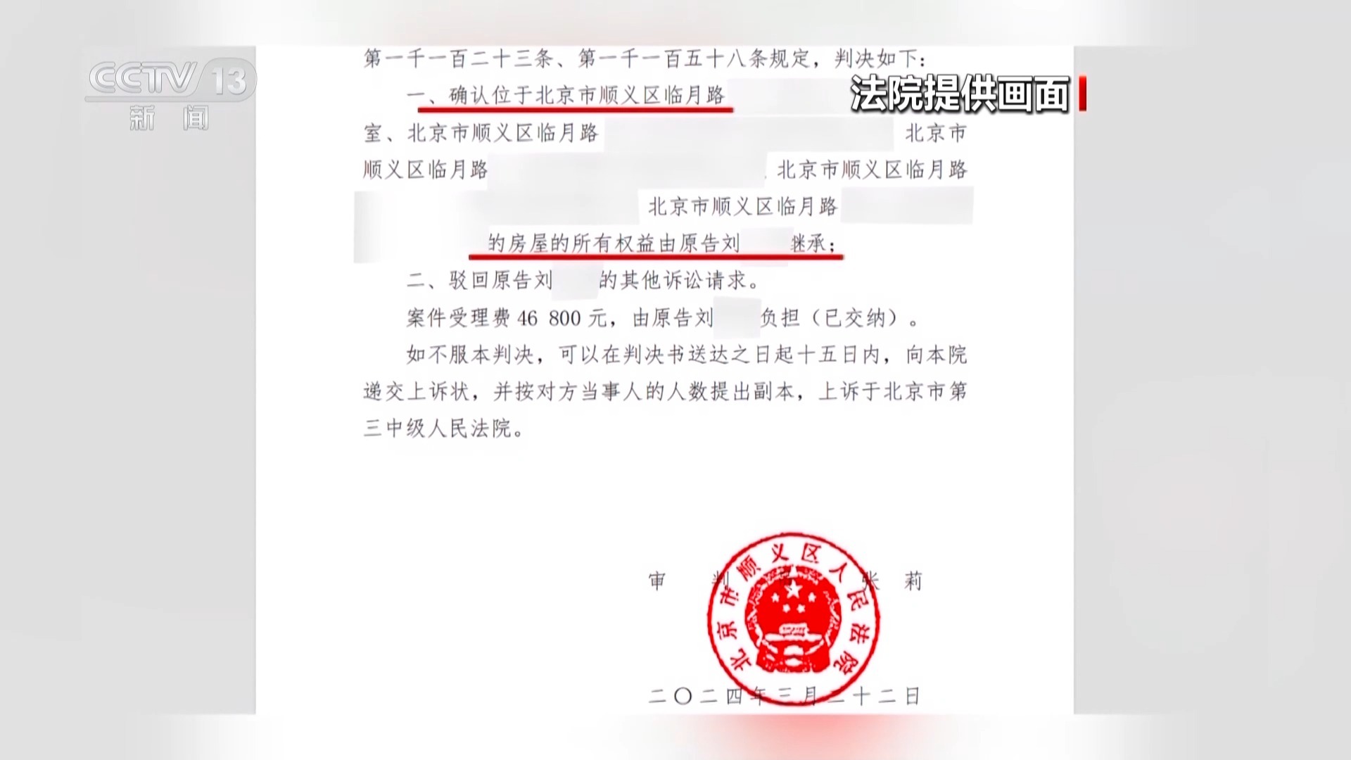 今年3月22日,北京市顺义区人民法院作出判决,涉诉五套房屋的所有权益应由刘先生继承。