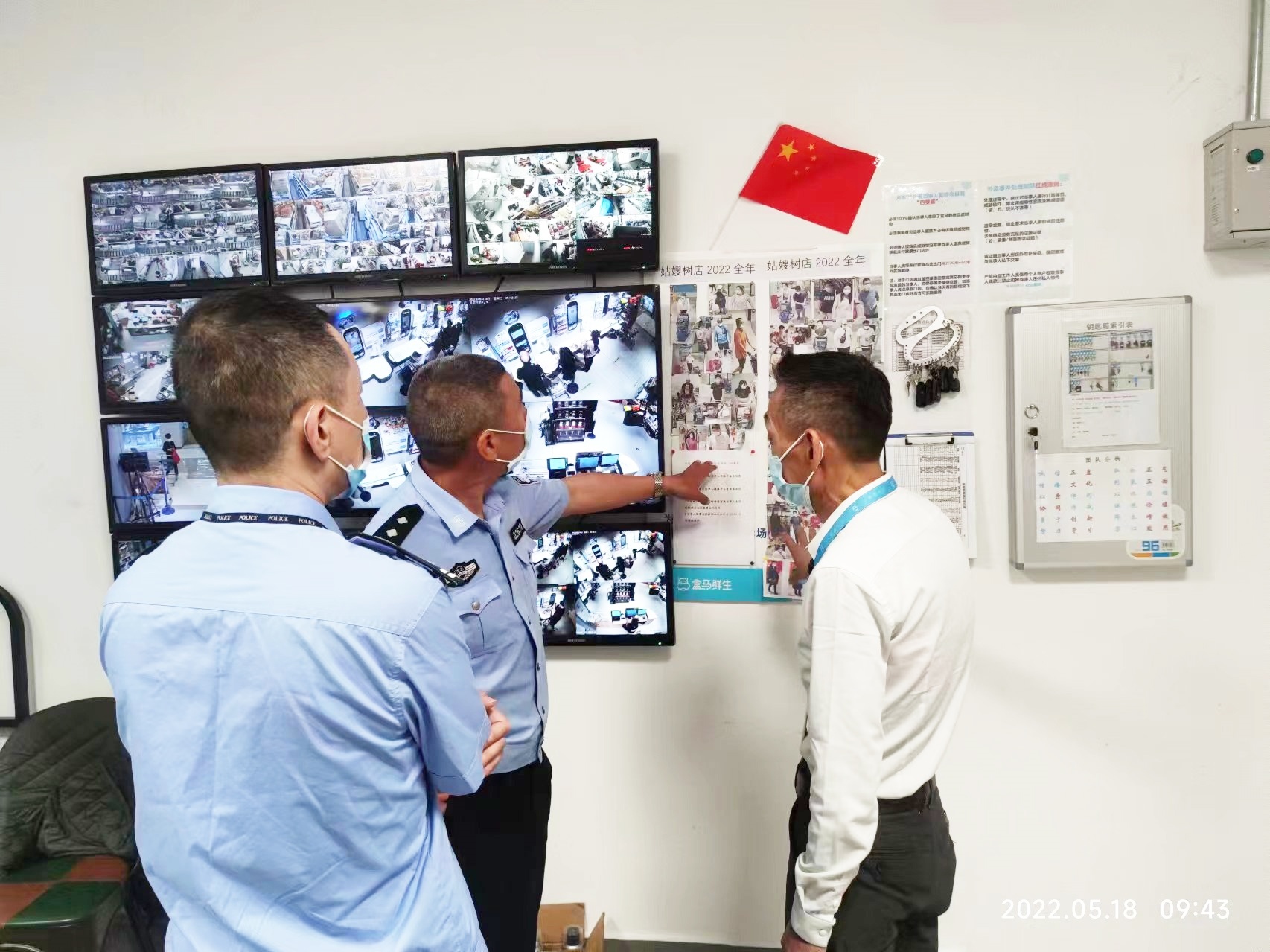 邱建军(左一)最后一夜在派出所值班