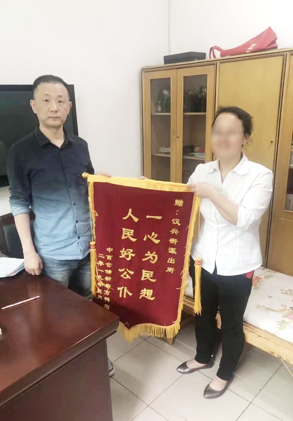 群众给邱建军(左)赠送锦旗 武汉公安供图