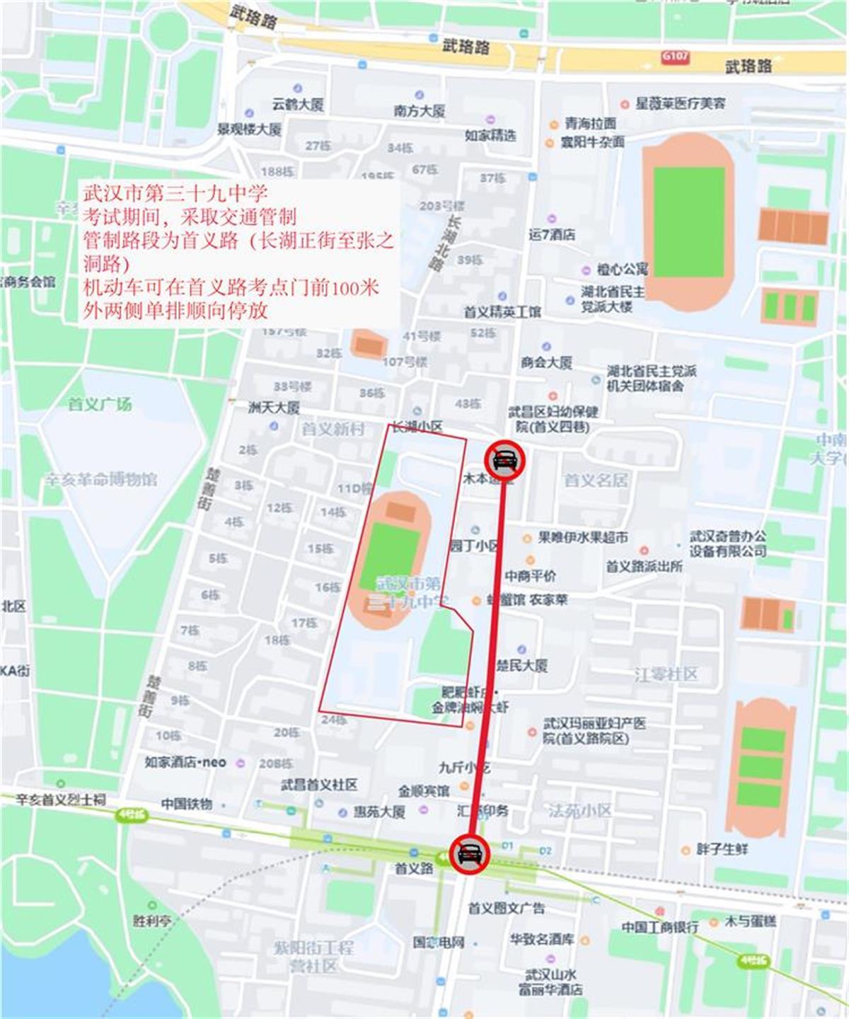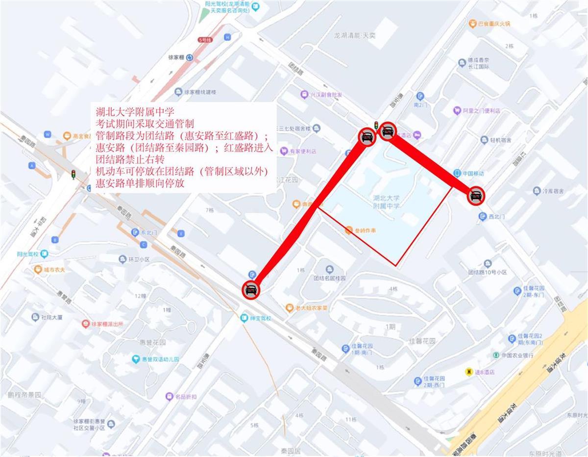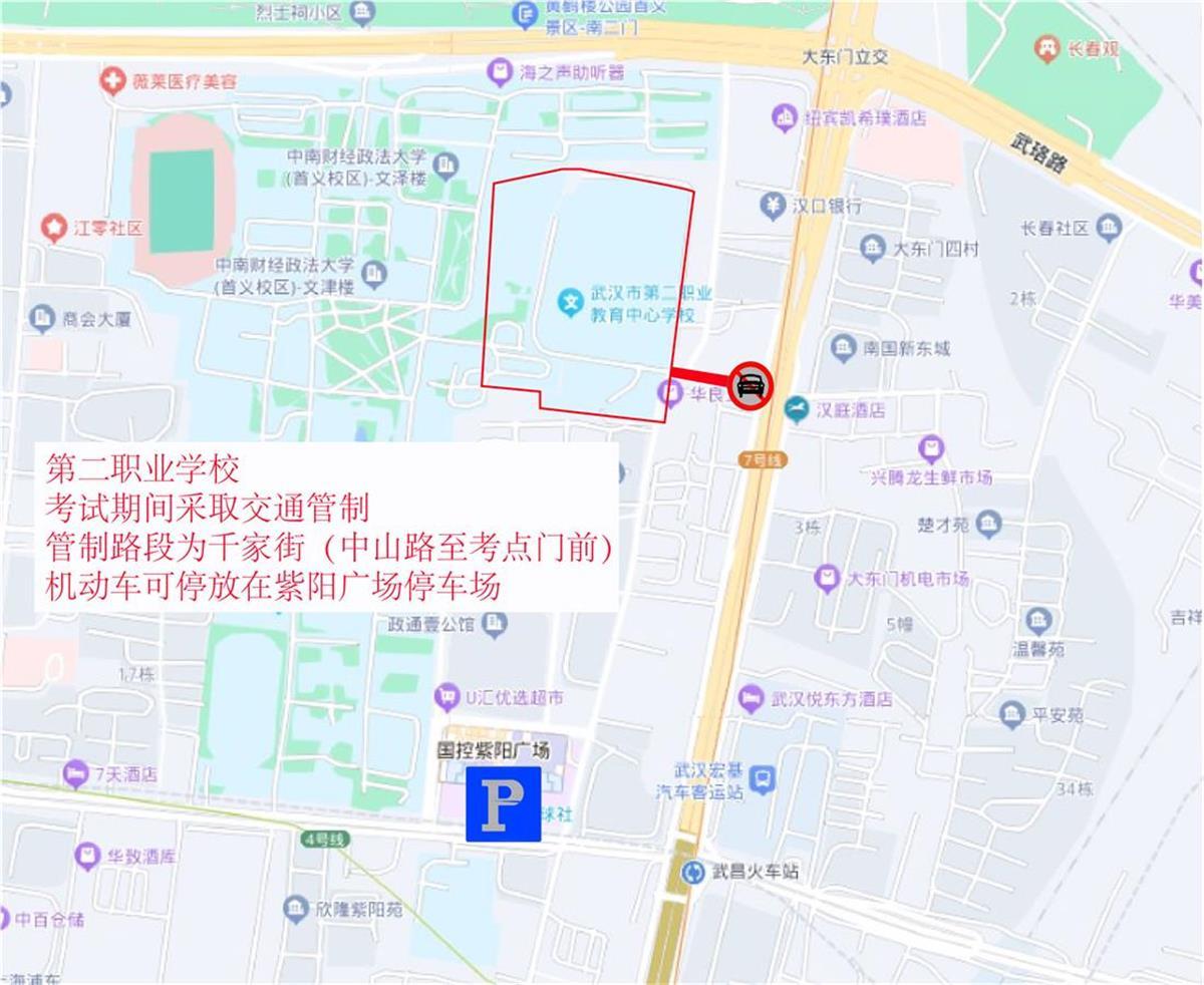 送考参考线路:经武珞路进入首义路后到达考点;经张之洞路、楚善街、长湖正街至首义路到达考点。