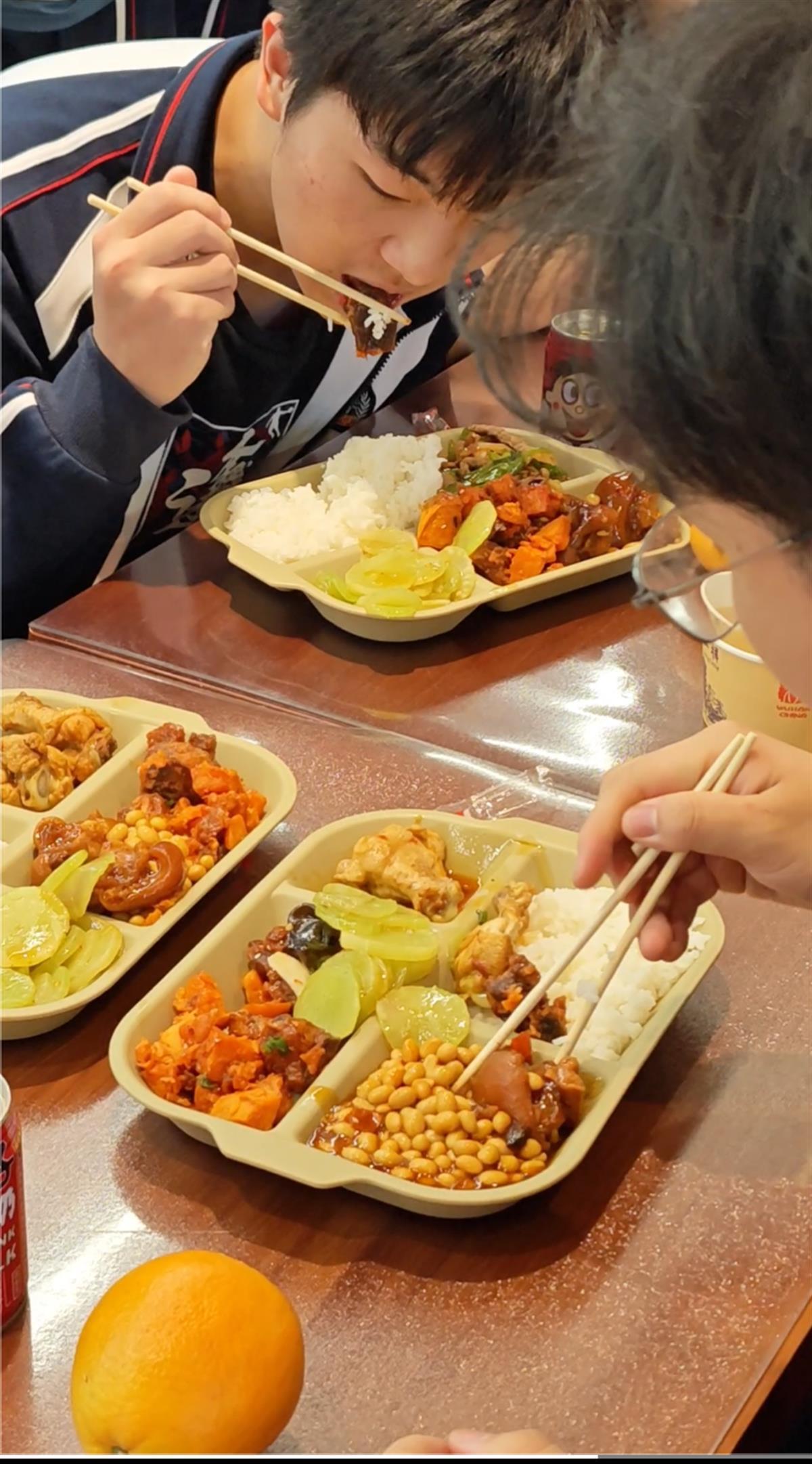 一名高三学生表示:“学校推出的‘985加油套餐’很贴心,橙子和旺仔牛奶也是我的最爱,吃到这样的午餐,感觉很温暖,也能感受到学校对我们的关爱和支持。”一位学生家长表示:“学校的用心,我们都看在眼里,作为家长,我们非常感动,也更加放心孩子在学校的生活。”