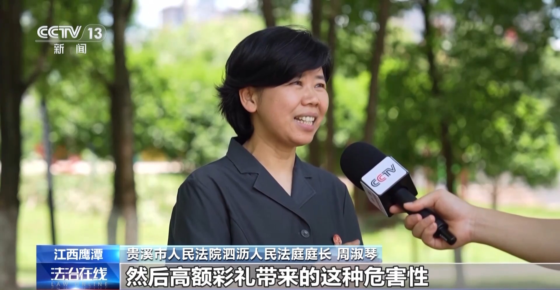 贵溪市人民法院泗沥人民法庭庭长 周淑琴:在整个案件的过程中,也算是普法过程不断递进的一个过程。从一些身边的人去说身边的事,然后让同龄段的同事跟她做交流,讲讲身边的人不收彩礼带来的好处,高额彩礼带来的危害性,对家庭、婚后共同生活带来的危害。