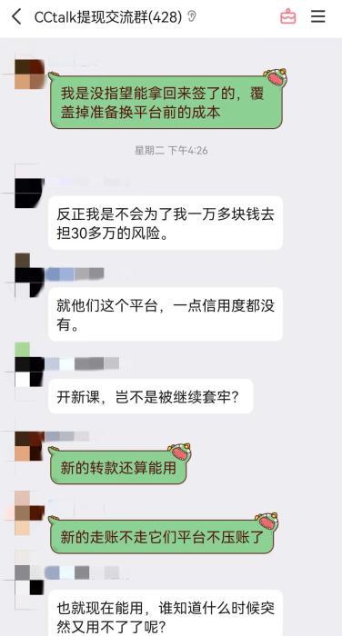 在CCtalk提现交流群里,多个群成员对声明以及欠款折扣方案表示质疑。