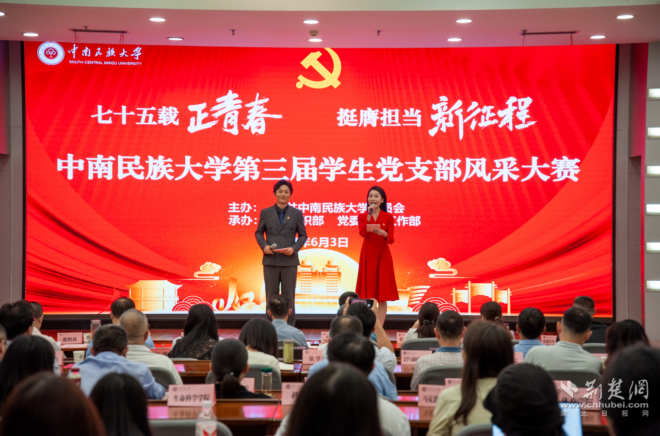 荆楚网(湖北日报网)讯(记者许文秀 通讯员辛志强、罗富元)七十五载正青春,挺膺担当新征程。6月3日下午,由中共中南民族大学委员会主办,中南民族大学党委组织部、党委学生工作部共同承办的第三届学生党支部风采大赛决赛在该校学术交流中心国际厅举行。