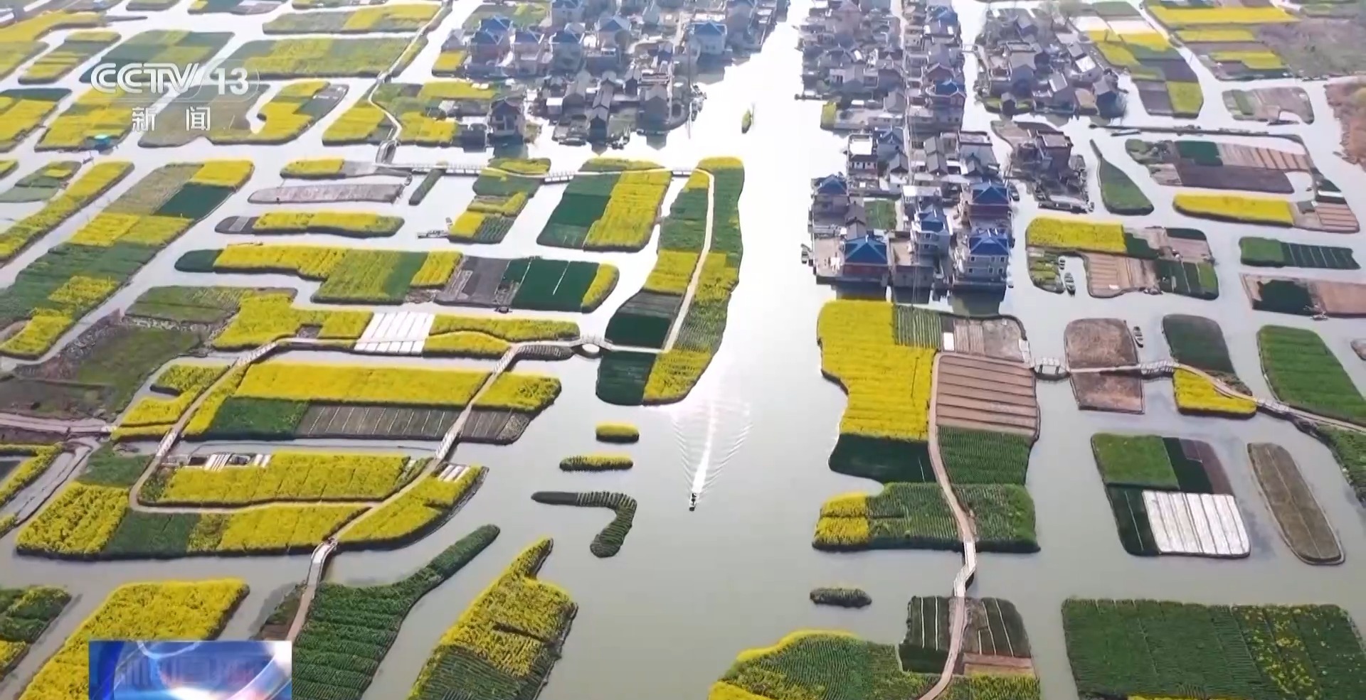 总体央视记者 周培培:我现在在江苏兴化的千垛镇,从这个地名就可以猜到这里有垛田这种独特的地貌,现在的垛田的万亩金黄,人们收获菜籽正忙,垛田之间河面上穿梭的除了传统的农用小船之外,还有一些大船运来了机器帮忙。