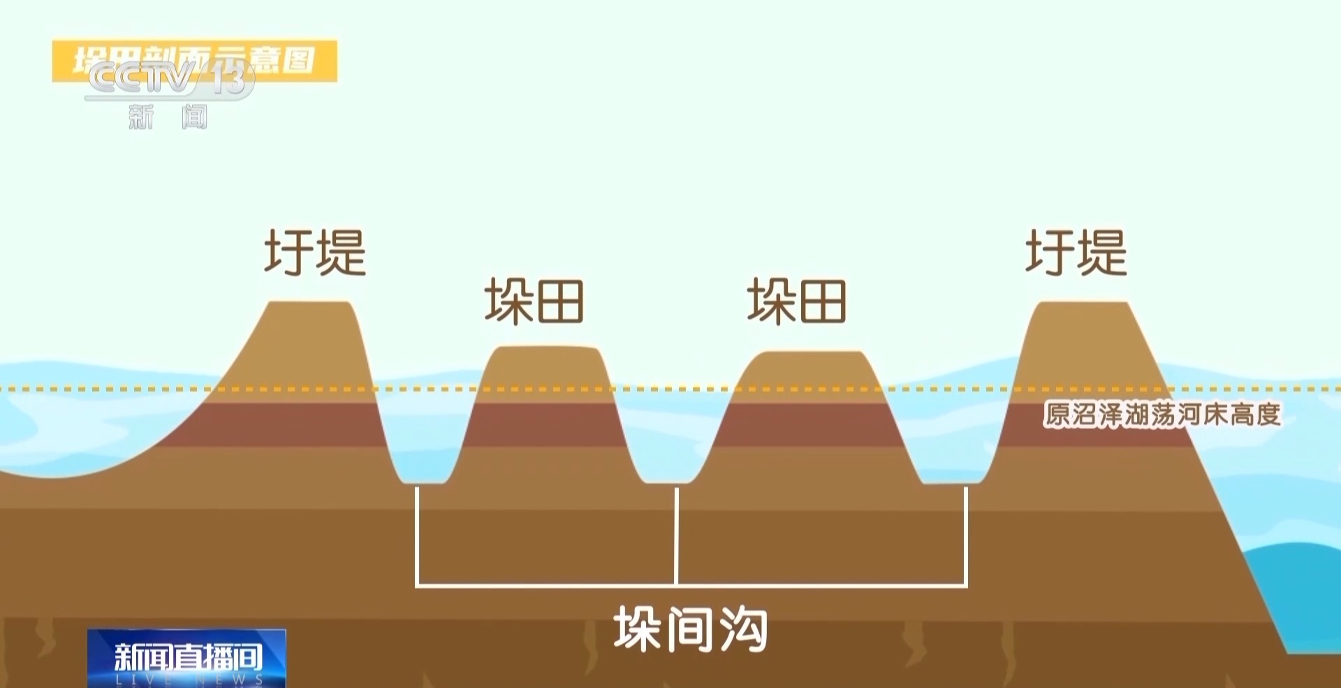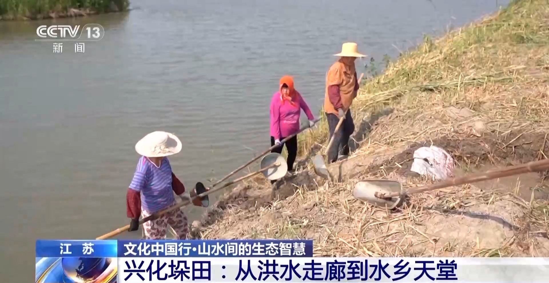 总台央视记者 周培培:这就是当地人口中说的三档槽,也就是三级取水口,当时为了防洪,垛田的高度比现在还要高出来将近两米,这个三级取水口就需要三个人配合,用我手中的戽水瓢从河道中取水舀到不同高度的分水槽,再经过地表的沟渠流到地表中央,既方便灌溉也便于排涝,尽显先民智慧。