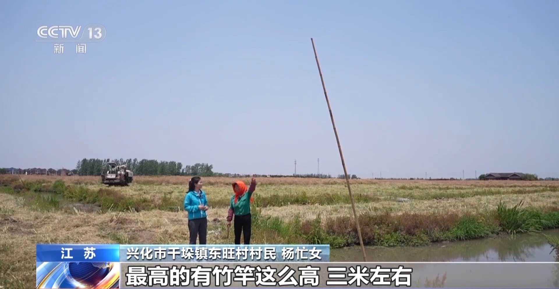 江苏省兴化市千垛镇东旺村村民 杨忙女:最高的有竹竿这么高,三米左右。过去没有大堤,没有闸,经常淹。所以以前就是大垛子,防洪涝。