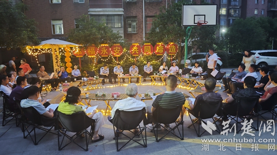 一把蒲扇、几排板凳、几杯清茶......就在几天前,大冶市向阳社区内,警民围坐一圈,大家就着一杯清茶拉家常,听到居民的意见和诉求后,民警和社区干部们一边答疑,一边认真做好记录。“平安夜话”传递了“党音”,收获了“民心”。
