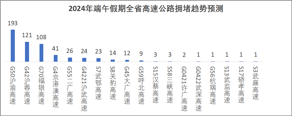 沪渝、沪蓉、福银、京港澳、二广、沪武、武鄂、关豹等高速拥堵风险较高。