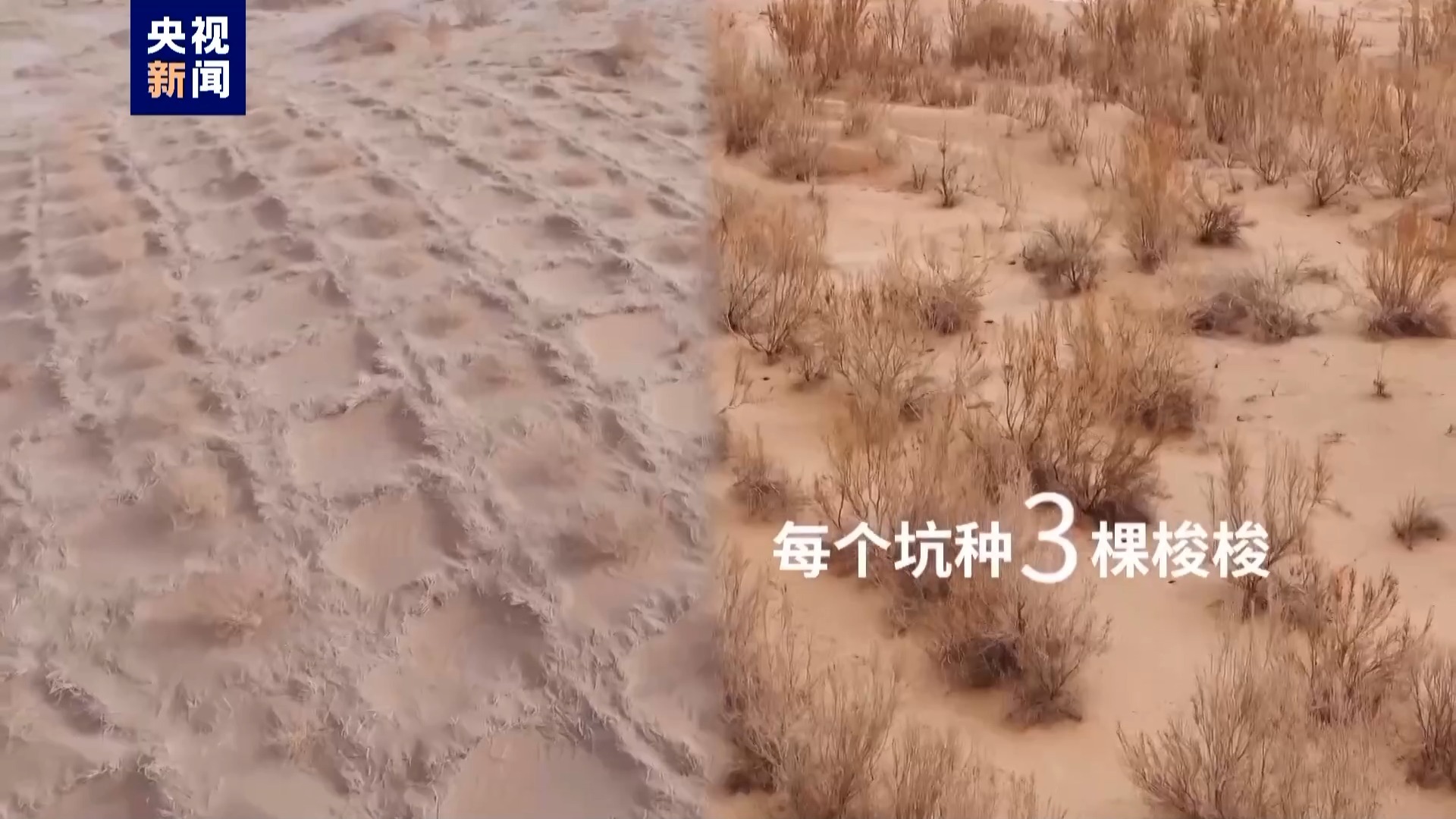 拿眼前这片荒滩来说,每亩要挖83个坑,每个坑要种3棵梭梭。40多年时间里,民勤人挖了将近1亿个坑,种下了将近3亿棵梭梭。