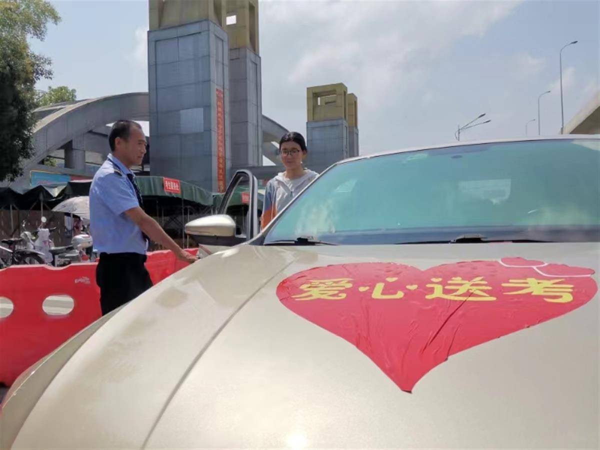 “师傅,我们是参加今年高考的学生,看您车上贴着爱心送考车的标志,方便送我们去职高考场吗?”“可以啊!我在这就是专门等你们的,来!快上车,我送你们过去。”7点半,黄陂李集高中高三年级的余京赐和杨子阳从维也纳酒店出来后,径直走到黄汉华的“爱心送考车”旁询问,得到肯定答复后,俩人乘车前往黄陂一中的高考考场。