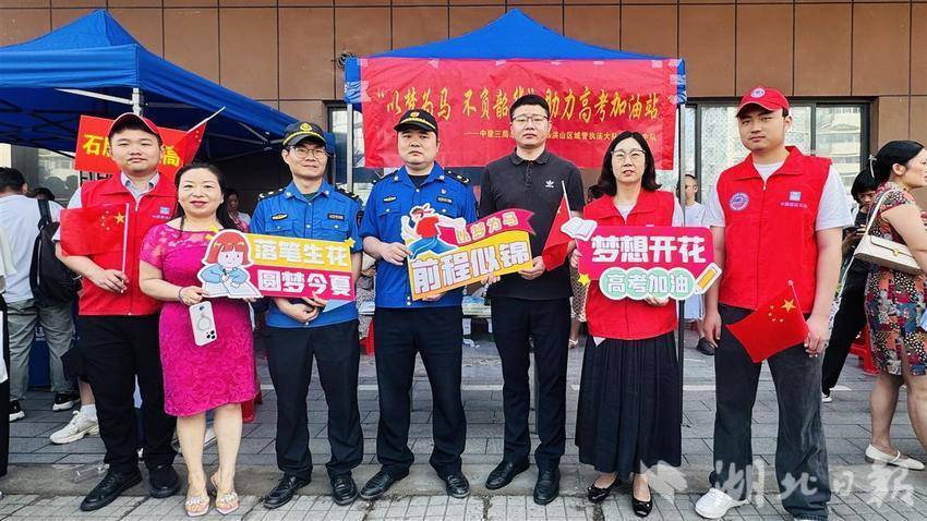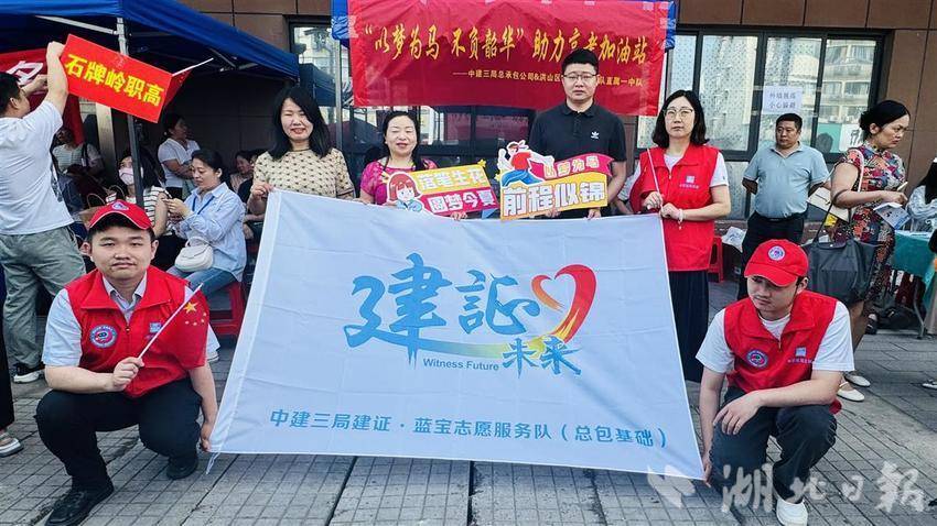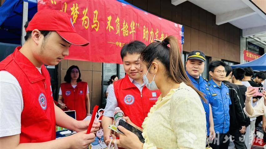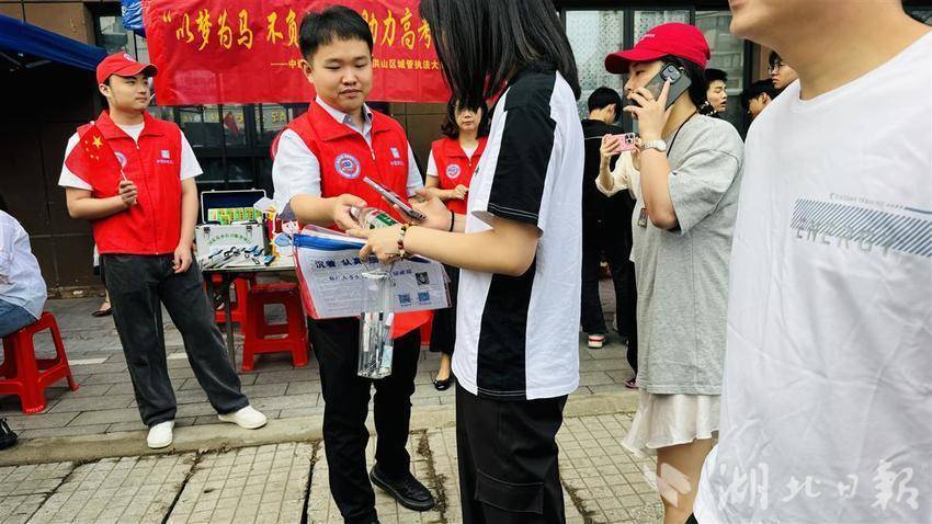 湖北日报讯(记者汪菁华、通讯员王淑芹、张婵娟)“今年是我在这里连续7年助力高考了。能现场为学子和家长们提供服务,我们自己的内心也充满激情与力量!”6月7日,武汉马房山中学高考考场外,中建三局福地项目的志愿者王淑芹说。