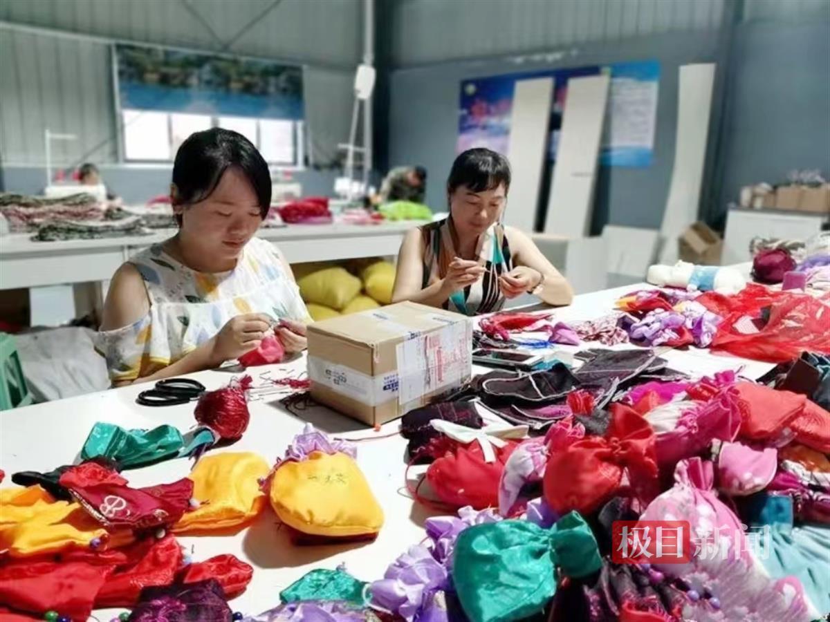 6月6日,郧西县店子镇七里沟村金星艾叶专业合作社,艾草香味扑鼻而来,展厅货架上摆放的福袋、牡丹花、小老虎、小兔子、百家姓等不同种类的香囊。车间里,一大早就开始忙活起来,二十多名妇女将晒干的艾草、玫瑰、陈皮、丁香等塞入香囊,不一会儿,一个个精美的艾草香囊就制作完成,堆满了操作台。