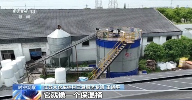 江苏太仓东林村三夏服务专班 王晓平:这边是东林村的全电气化发酵罐,它就像一个保温桶。