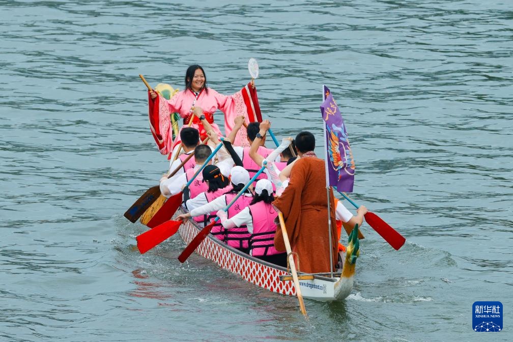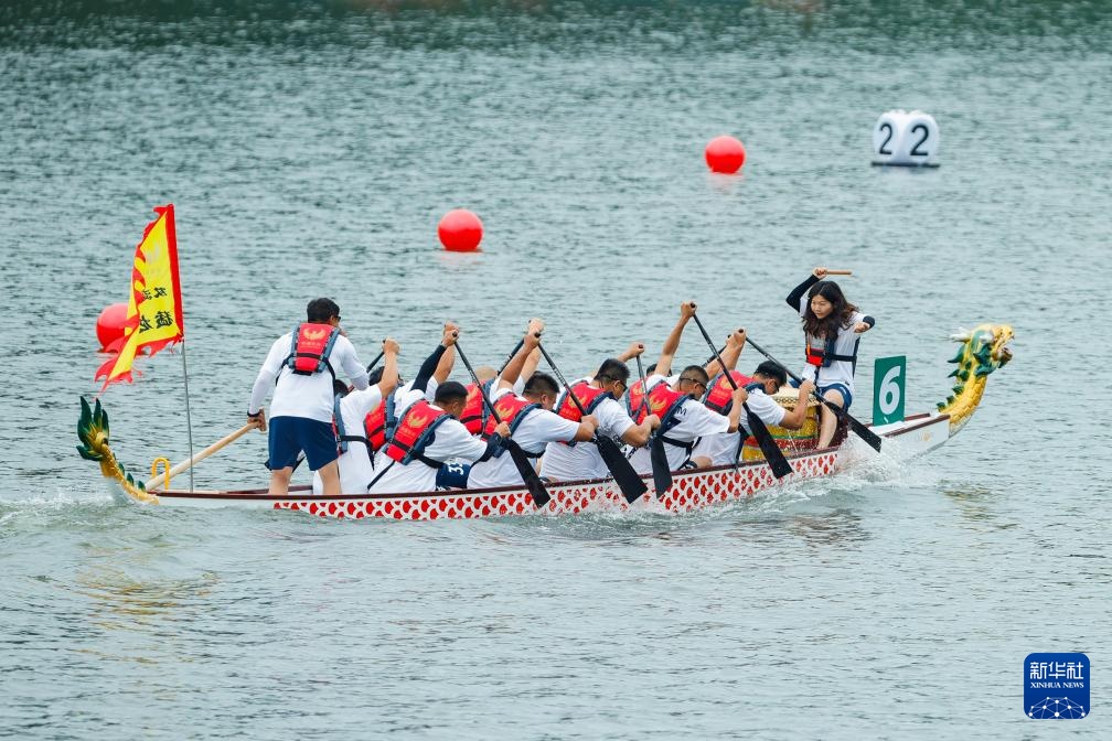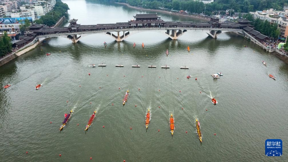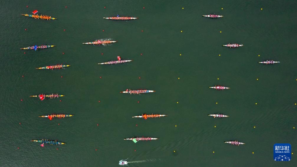 6月9日,参赛队伍在赛前巡游(无人机照片)。新华社记者 沈伯韩 摄