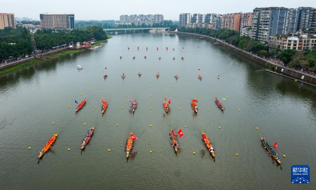 当日,2024天府端午龙舟会在四川省成都市新津区开幕,共有54支队伍参赛。此次比赛分为公开组、本地组、成都市区(市)县组、专业组,有12人制和22人制比赛,赛道长度分为200米和500米。