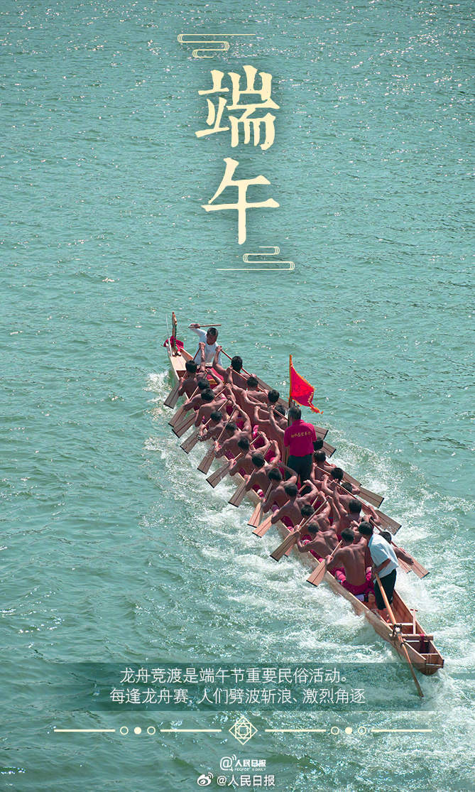 ③龙舟赛劈波斩浪、激烈角逐。各地习俗不尽相同,但同样场面热烈、氛围感满满。