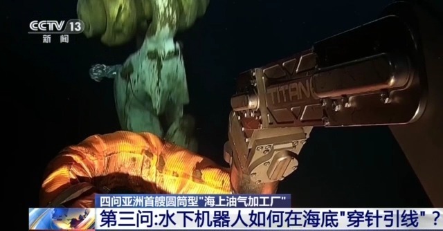 总台央视记者 古峻岭:在水下机器人的操作间,工作人员此刻正操作机器人进行水下作业。我们可以从屏幕上看到,在300多米深的海底,机器人正展开它的机械臂进行锚链挂钩作业。工作人员告诉我,在这个深度的压强相当于海面上的30倍,同时加上海流的干扰因素,这个作业难度比飞船在太空中对接也不差。在水下机器人操作过程中,最难的是什么呢?