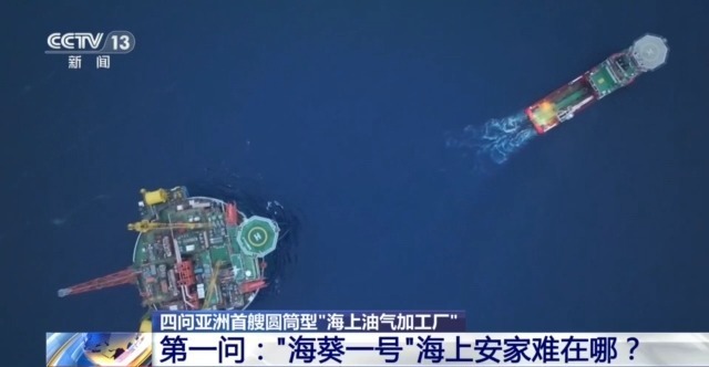 总台央视记者 古峻岭:在位于深圳东南约240公里处的流花油田海域,“海葵一号”经过长达17天、超1300海里的远航,从青岛拖拽到这里,它将在这里“安家落户”,服役超过30年。