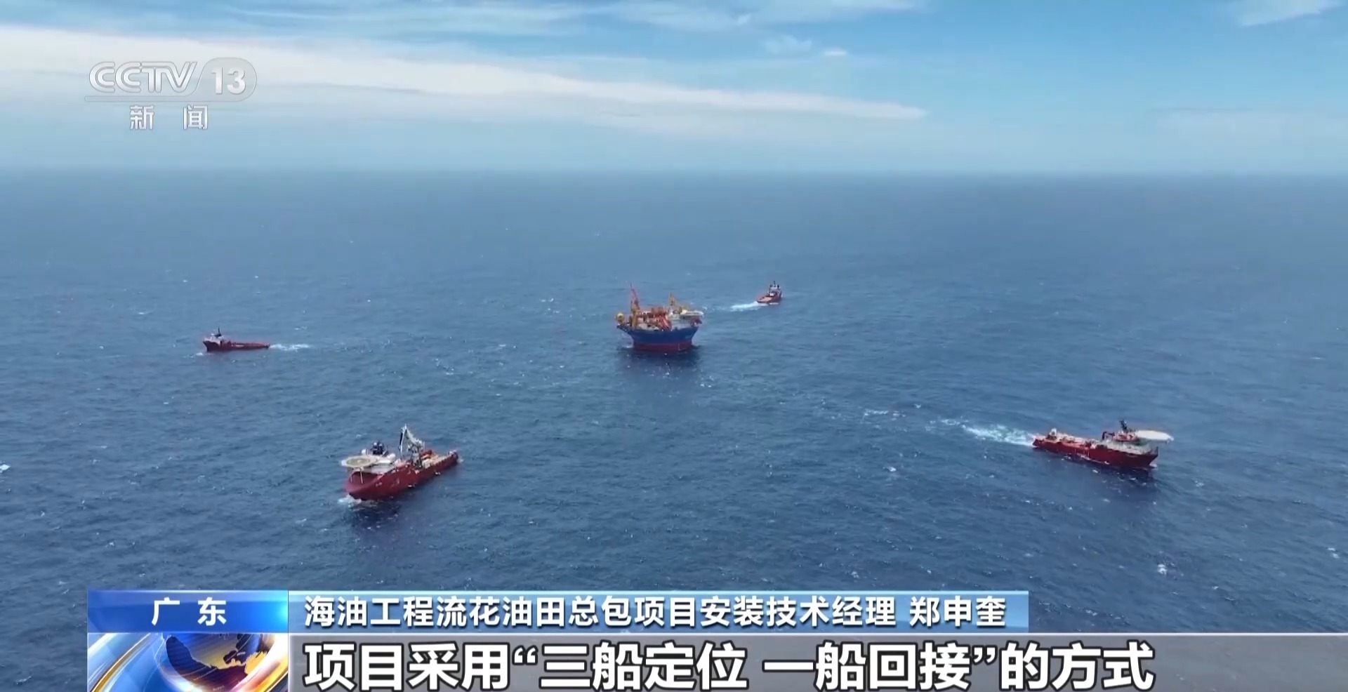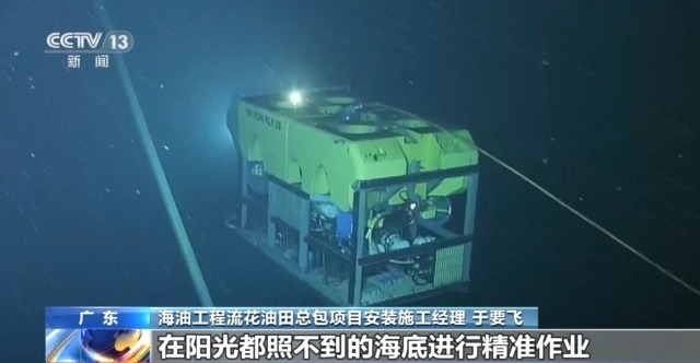 海油工程流花油田总包项目安装施工经理 于要飞:作业过程可以形象地比喻为“深海接龙”,回接前首先要将“拴马桩”一样的吸力锚,穿过324米深的海水打入海床以下21米,回接时需要操作水下机器人,在阳光都照不到的海底进行精准作业,作业过程受强对流、内波流等叠加影响,对安装技术提出极大挑战。
