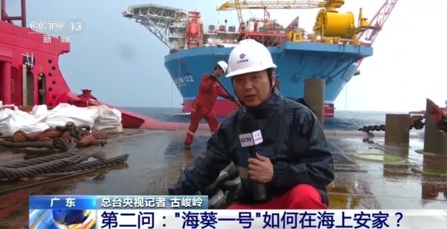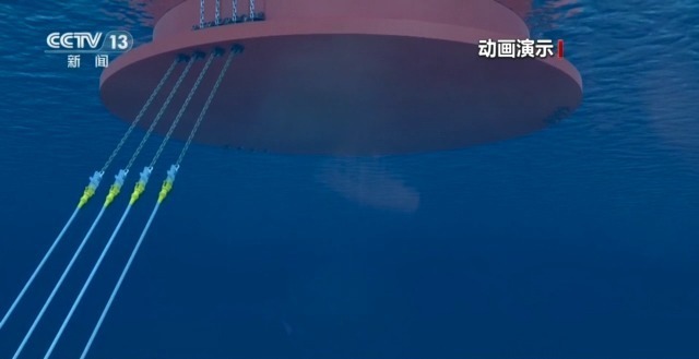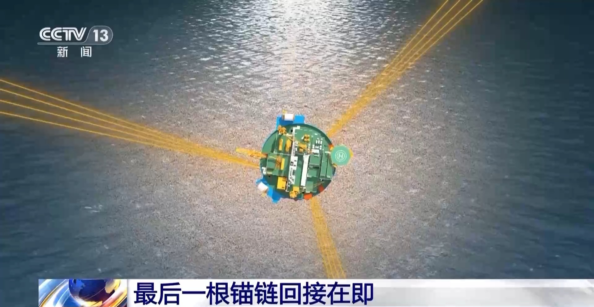 总台央视记者 古峻岭:“海葵一号”是漂浮在海面上的,它是靠12根锚缆,从四面八方将它固定起来紧紧地拽住,从而起到固定的作用。