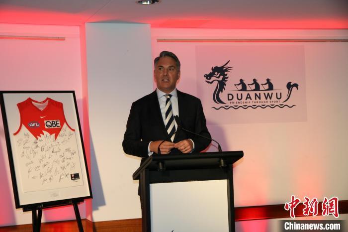 当地时间6月9日,澳大利亚美驰集团、澳大利亚澳式橄榄球联盟(AFL)、澳中工商业委员会(ACBC)等机构在悉尼板球场举办第二届“端午主题澳式橄榄球比赛”。澳大利亚副总理马尔斯出席活动并致辞。中新社记者 顾时宏 摄
