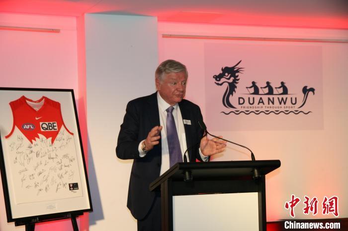 当地时间6月9日,澳大利亚美驰集团、澳大利亚澳式橄榄球联盟(AFL)、澳中工商业委员会(ACBC)等机构在悉尼板球场举办第二届“端午主题澳式橄榄球比赛”。澳大利亚美驰集团资产管理部主席理查德·柯里斯出席活动并致辞。中新社记者 顾时宏 摄