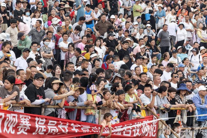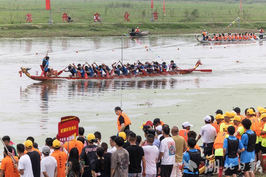 6月10日,武汉千年古镇黄花涝在古镇码头举办龙舟大赛,13支龙舟队同场竞技,吸引周边村镇上万人前来观赛。这也是时隔七年之后,古镇黄花涝再次举办龙舟大赛。