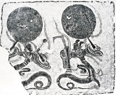 △ 汉代画像石伏羲女娲图,四川博物院藏。